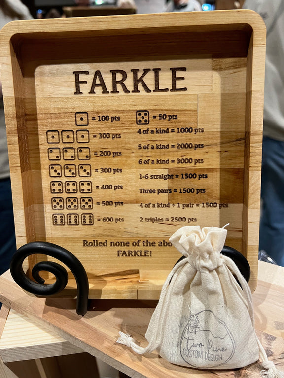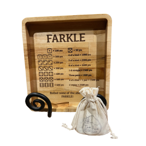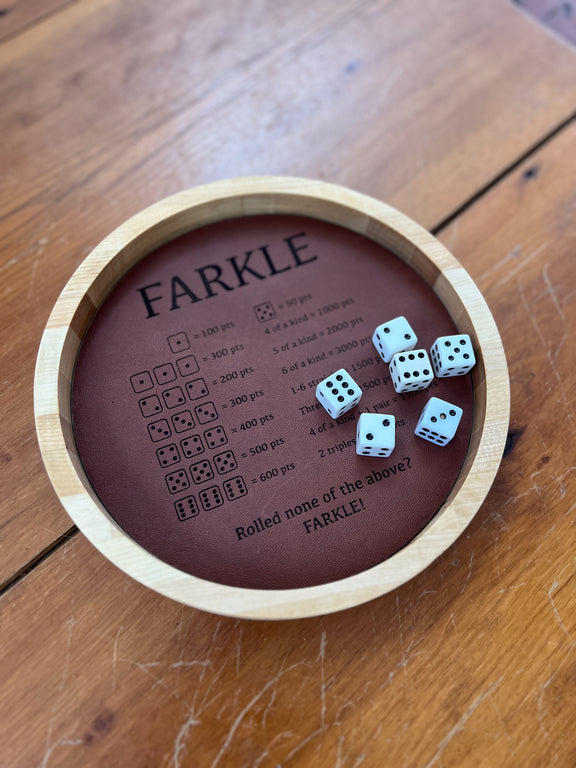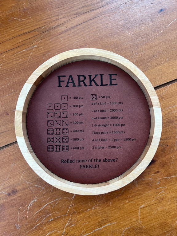 Elevate your Farkle game with this handcrafted wooden board, made from reclaimed maple butcher block. Measuring 7.25" x 9.25", this sturdy board features laser-engraved rules directly on the playing surface, eliminating the need for rule sheets and adding a touch of rustic charm to any game night. Finished with a food-safe mineral oil, this durable and beautiful board is perfect for family gatherings and game nights with friends.