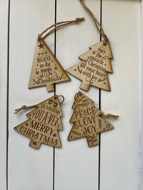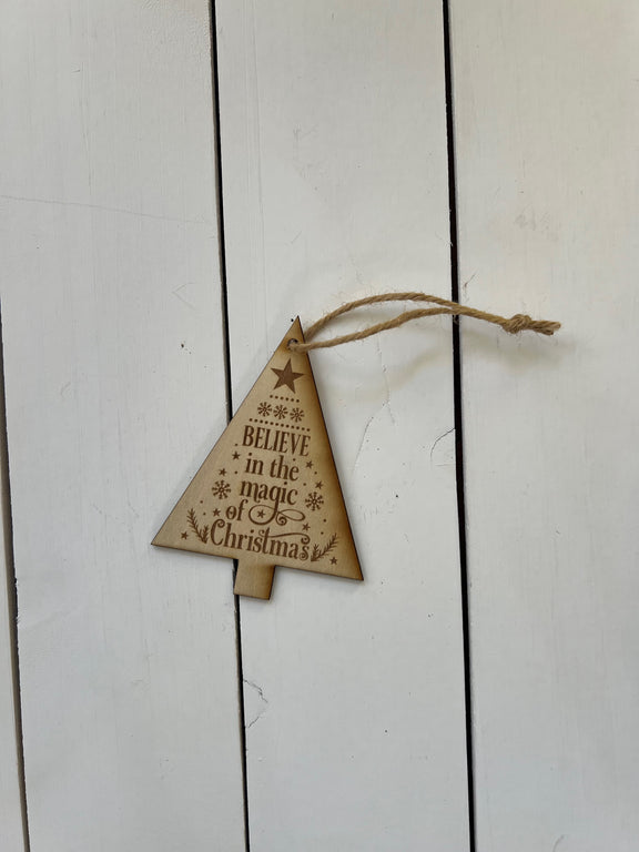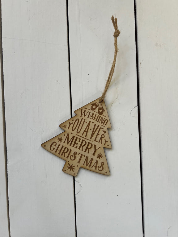 Handcrafted wooden ornament, perfect for adding a touch of rustic charm to your Christmas tree.